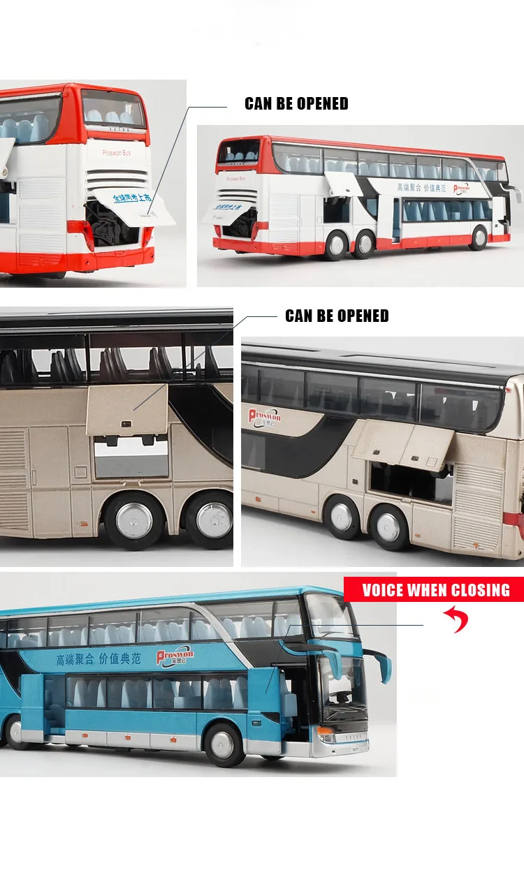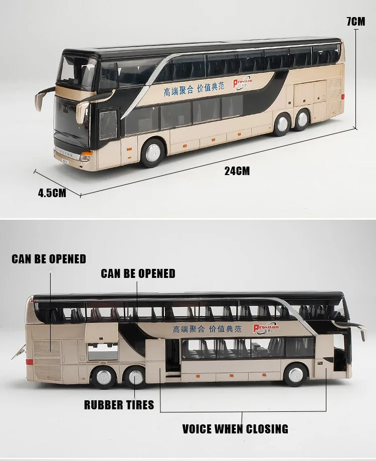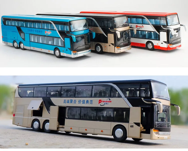 1:32 High Simulation Double Sightseeing Bus Model Toy Cars Alloy Flashing Sound Vehicle Toys