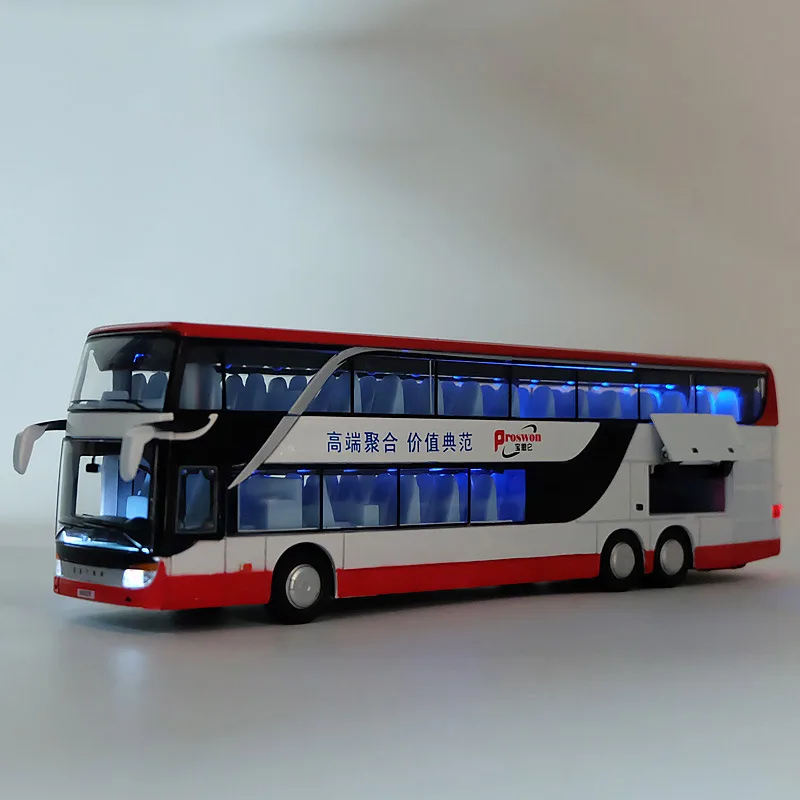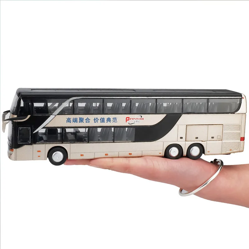 1:32 High Simulation Double Sightseeing Bus Model Toy Cars Alloy Flashing Sound Vehicle Toys