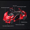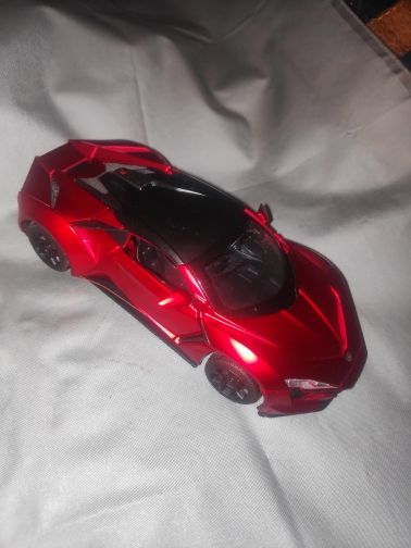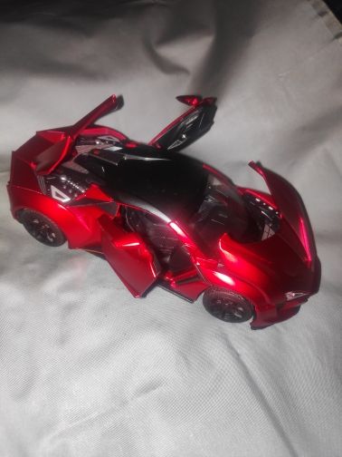 A clear car. Everything opens. Everything works. Came without batteries.