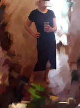 At og 83, ot 71, ob 101 size s came up. Height 175 length as on the model. The only thing is that you want to slightly sew the incision (so as not to accidentally open the excess)) and slightly lower the hoods for the belt.