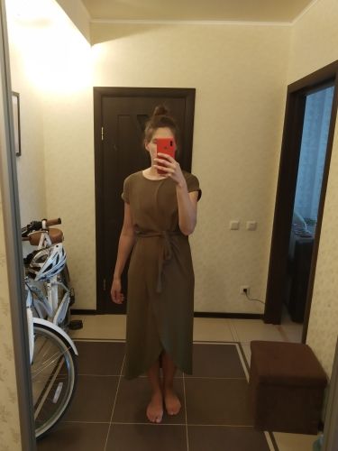 Super dress, did not expect, thought waiting for disappointment, from the series "waiting-reality". But not to say that it met my expectations, but also did not disappoint. Sits well, on my height the belt is tied almost under the bust, but i like it so much, hides my postpartum abdomen the figure slim, visually pulls, the cutout of the skirt is piquant. Fabric knitwear, pleasant, in the summer it will not be hot, the seams are all stitched neatly, the quality is good, the price is pleasant. Definitely recommend to order!