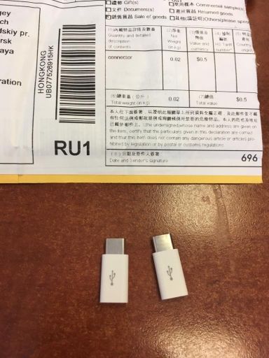 Delivery to M.O. for 33 days. Fast charging goes by either side. Bought with a coupon came out vashche 1 ruble 32 cop. Packing No. Just two adapters in a yellow postage package. Everything is whole and both work. I recommend.