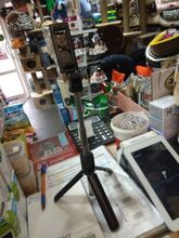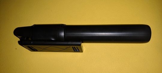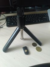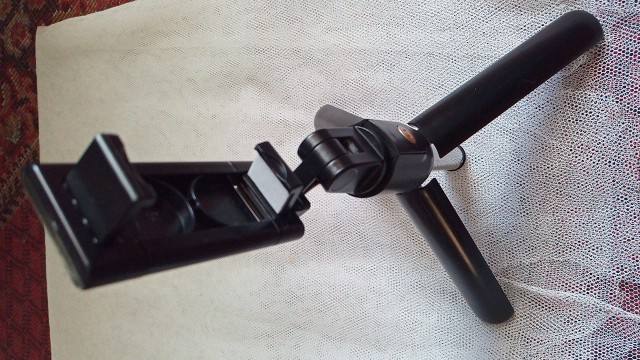 Excellent product. The body is flimsy, but everything keeps. The remote is removed. Presses the volume button. Catches from afar-more than 10 meters. Lithium battery included cr1632. The angle of rotation of the fruit is rigid. Legs trilegs are simply plastic, stand on a smooth surface confidently, but spring. The average smartphone will hold. Walked from HK to yakt two months
