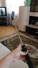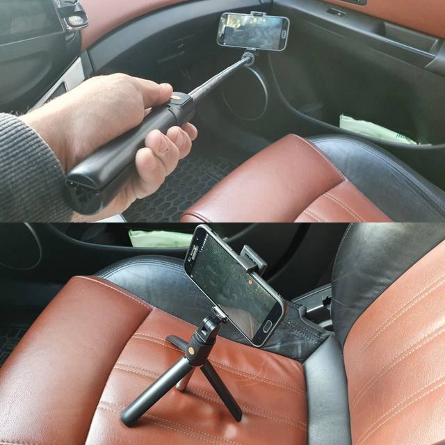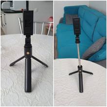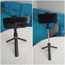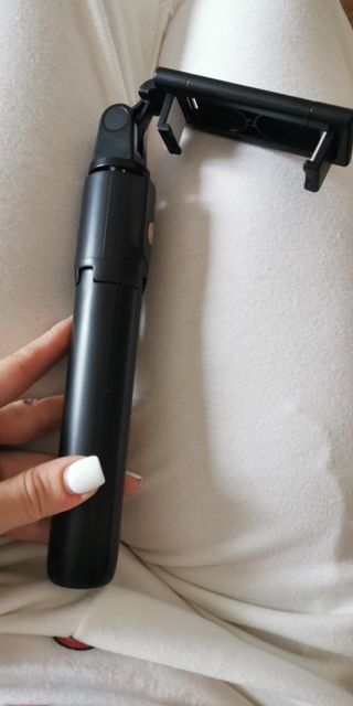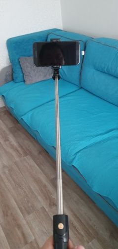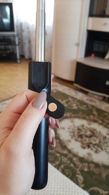 Very glad to purchase! Very cool selfie stick, works fine. A large phone (i have xiaomi redmi note 6 pro) keeps well. To the button 'photographe' worked not as a button to increase the sound-it is necessary to change in the settings of the camera, in the instructions on the box it is written! In general, super! Thank the store! :)