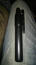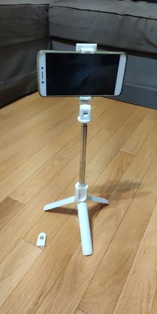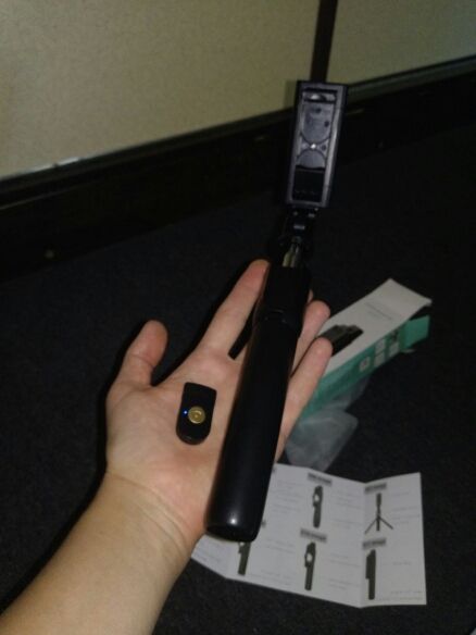 While i like everything. The stick is worth its money. Made qualitatively, firmly. The phone holds firmly. Button with bluetooth (which pleasantly surprised me), without any laces. The remote with the button is detached from the tripod. Trileg does not stagger. I will recommend to friends and good friends.