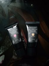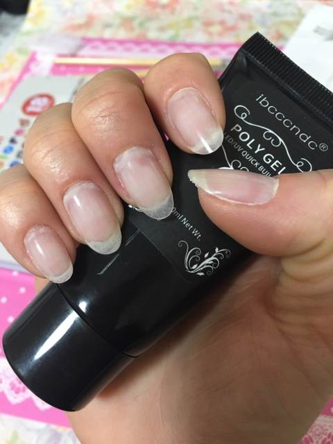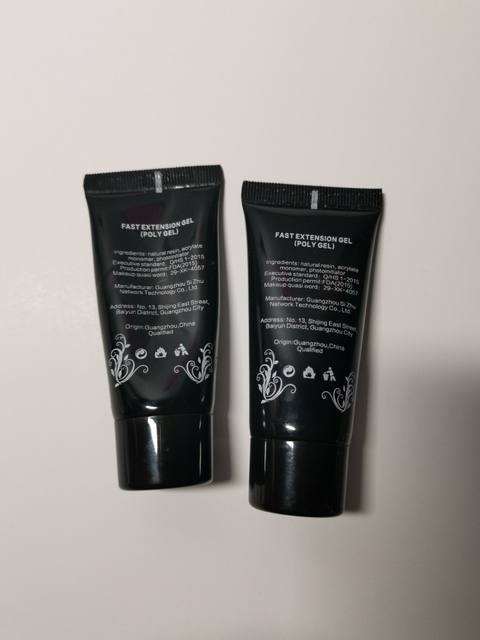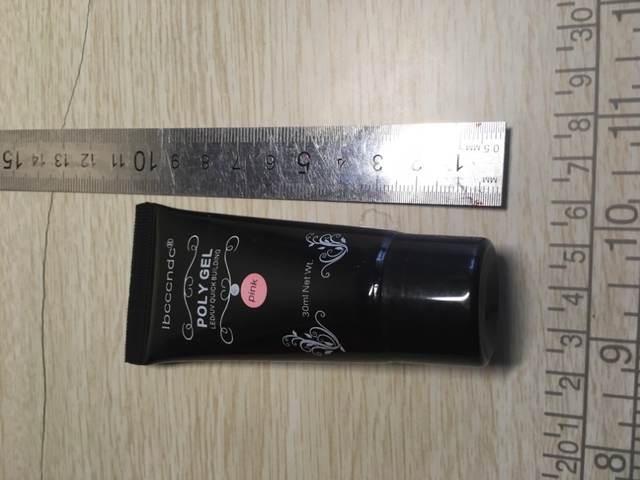 Polygel is small. I hope enough for two extensions. Very tight extruded, medium distributed and mid-laid. Pink color is little like pink. Rather pale milky white.