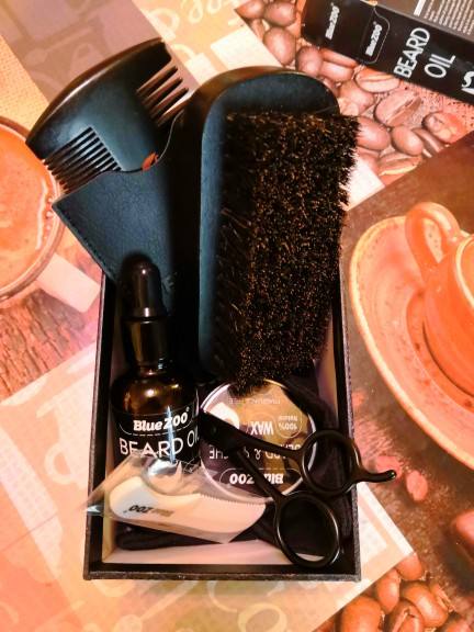 X A good kit for the care of the beard, suitable and as a gift, in the kit there is a box, reached the restless. The smell of oil and wax is slightly lemon. Delivery to hamburg in two weeks. I recommend