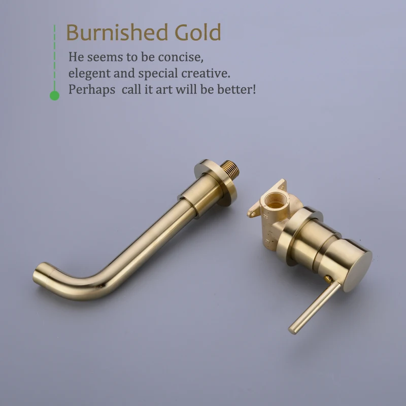 Matte Brass Wall Mounted Basin Faucet Single Handle Bathroom Mixer Tap Hot Cold Sink Faucet Rotation Spout Burnished Gold