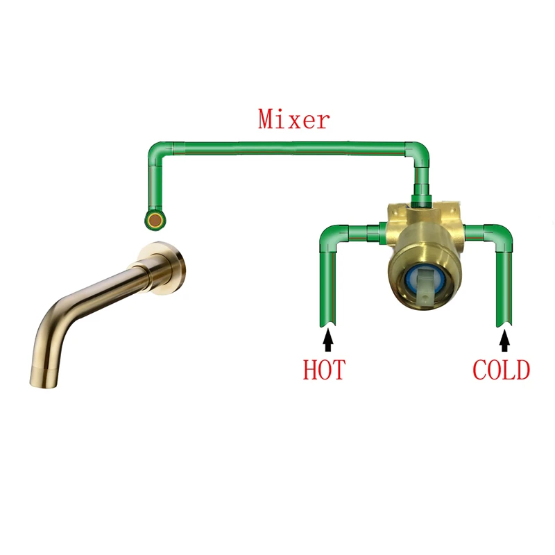 Matte Brass Wall Mounted Basin Faucet Single Handle Bathroom Mixer Tap Hot Cold Sink Faucet Rotation Spout Burnished Gold