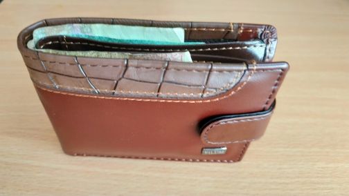 The purse is good, looks decent, although cheap material. Under the ukrainian bills are too small, but tolerable. Under dollars just right. No smell, came quickly. You can take it.