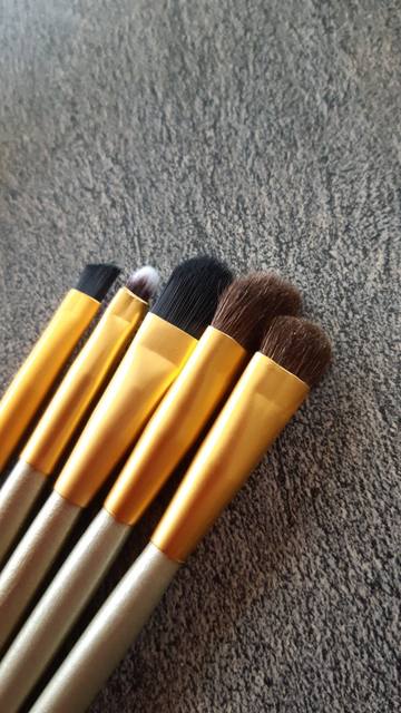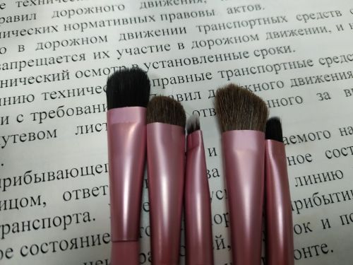 The goods came exactly in a month, delivery through latvia. The pile on the brushes is elastic, but soft, does not fall asleep. The store attached a pair of brushes and an applicator for lipstick, unexpectedly, but nice. Of the minuses only a little mechanical smell, but it quickly disappeared.