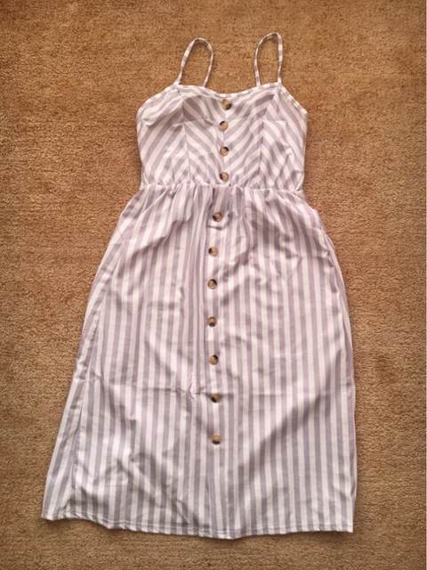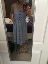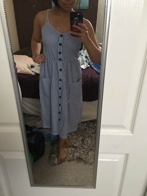 Super cute dress! Fits a bit on the bigger side but is doable! It’s super comfy and very nice material! Fast shipping :) recommended
