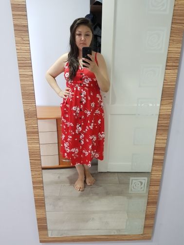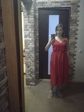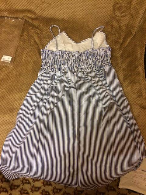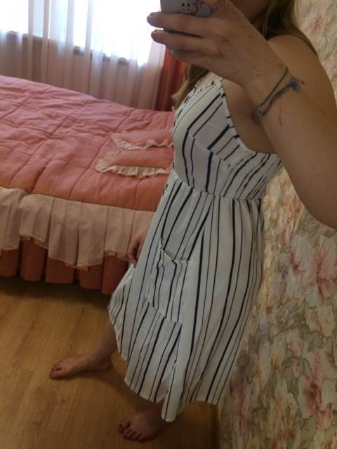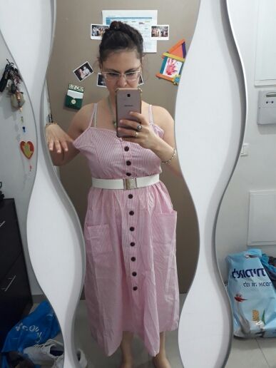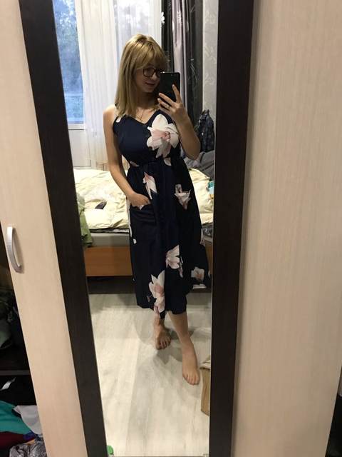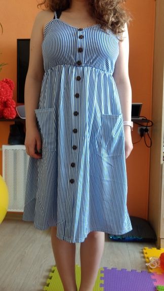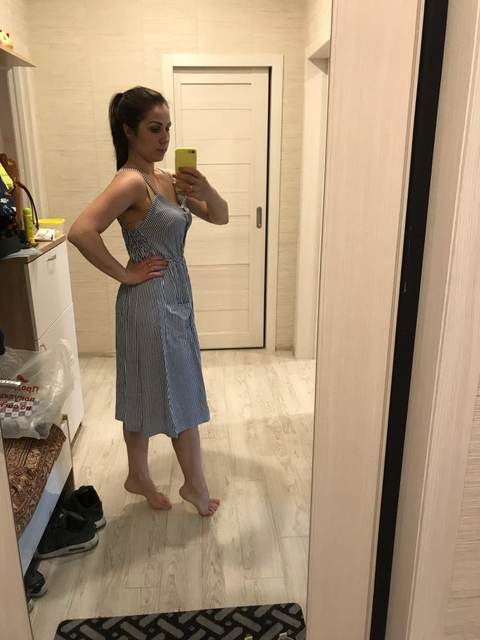 Cool sundress. Came for 3 weeks, all as in the description for my height 1:59 below the knees, on o/b 100, o/g 100 ordered l just if your parameters already take more xl. A little frayed where the chest is, but i think this is because of my large breast size :-) (you will have to make a dart deeper, and so a great sundress order boldly!