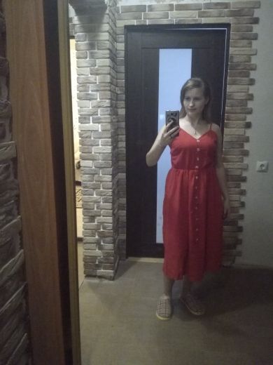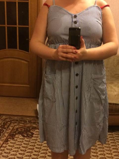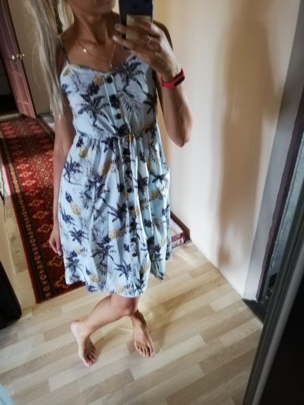 A good sundress, synthetic fabric but i took on vacation so as not to crumple, so it will go. The waist is slightly overstated in connection with which and the darts are a little out of place higher than should be. With the store did not communicate was not necessary, it was a month. I recommend
