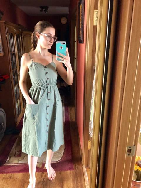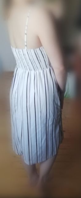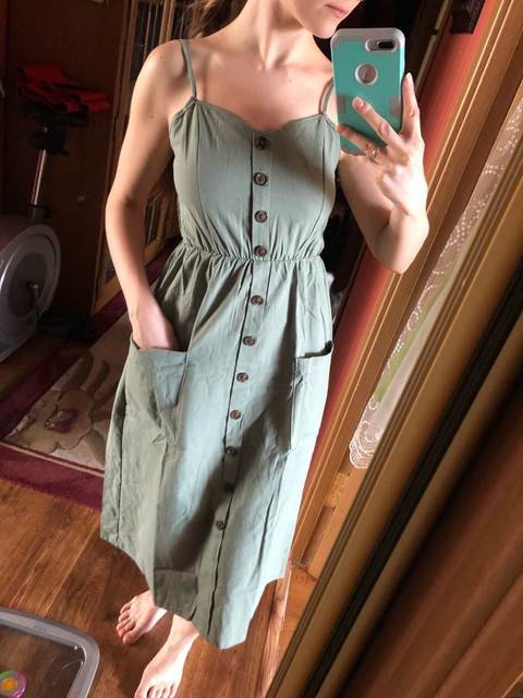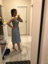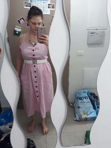 Excellent dress for its price, attached to the body fabric, the seams are stitched smoothly. The top if in the skirt, then always wear s. slightly slightly on the arms the top of the dress is crumpled. Color, corresponds to the photo. At my height 166 dress below the knee, the elastic band tightly holds, but does not press, the size of the waist i have 73 cm, a blouse dress. Straps are not adjustable, a little fall off me. I took this color, because everyone writes that the material of this color is better than that of others. I advise everyone to take it. Comfortable and light dress for summer