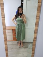 Not exactly as in the photo, but very close. On top there is some coima, decorative buttons. On height 160 length below the knee. The size was chosen according to the size grid in the description, the figure is well village. In general, i am happy, i may order another color :)