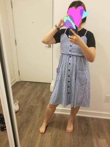 Cool sundress. Sits perfectly. The only negative-shines through the underwear. Even seamless panties.