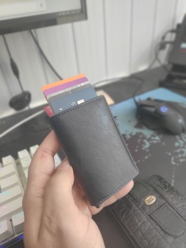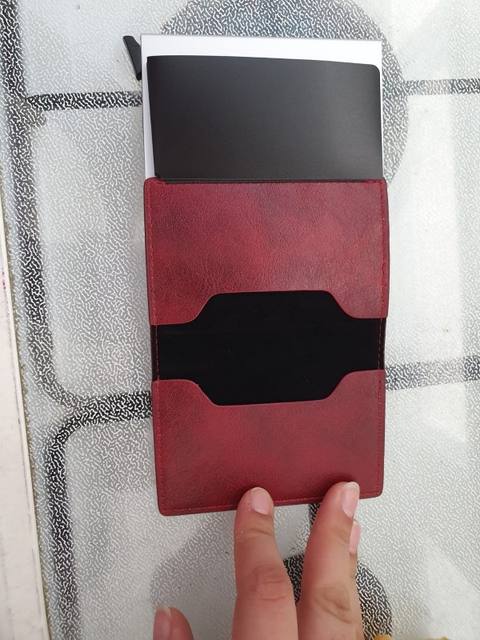 The order was made on august 15 and arrived in atyrau on september 2-3. Externally small, unfortunately does not hold the book itself, it would be better on the magnet or what clasp was. Fit 6 cards. Come out with a ladder. If you put all 6 cards, the lower catch (or as it is called) becomes tight and the cards come out hard. The material is not bad. Let's see how to behave in the sock