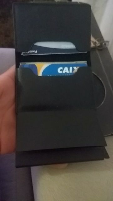 Product is as the description, in my test could put only 5 cards in compartment they ejetam, more cards inside, fit few notes money, CNH fits fair, with the time will damage because the fold and having to be without the plastic. Ideal for those few cards and has CNH Digital. Would be a little larger to accommodate documents with the plastic.
