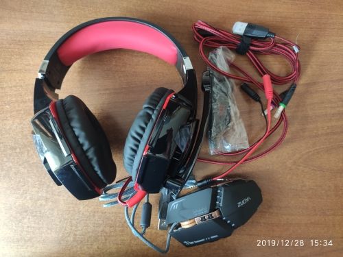 The photo is already in the reviews. The parcel came quickly enough and the courier IML called 5 min before arrival. The Mouse really looks presentable, the wheel does not seem to work immediately. It is sometimes necessary to scroll it by 180 °. On the headphones. Look and sit very comfortable. The microphone did not test. To say that headphones sound straight wow-No. but the price of quality is very good. In general, I recommend.
