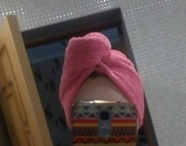 Good towel. For long, thick hair suitable
