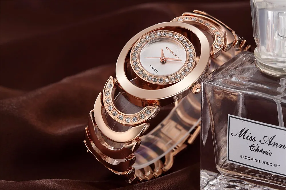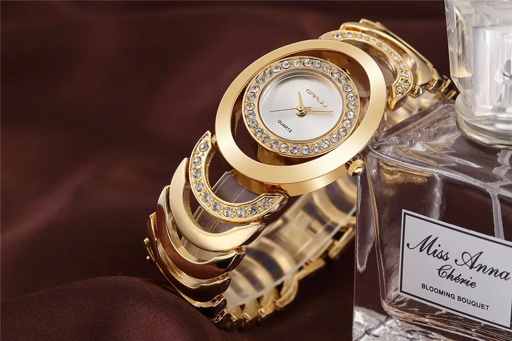 Prestigious Ladies Rhinestone Stainless Steel Bracelet Quartz Watches