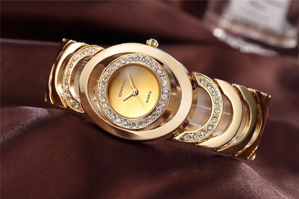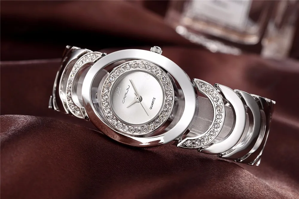 Prestigious Ladies Rhinestone Stainless Steel Bracelet Quartz Watches