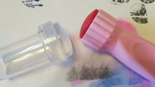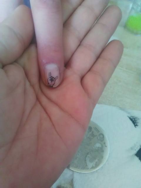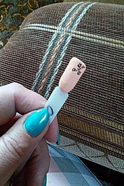 Lacquer for stamping is not pure brown, but with a burgundy tint. And so in work, good. Dries in the air, but i have time to move.