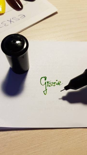 Labai geras lakas. Stipriai pigmentuotas, buteliukas plastikinis, minkštas, paspaudus galima piešti su metaliniu vamzdeliu.Registruota. Atvyko per 3 savaites. Rekomenduoju prekę ir pardavėją.