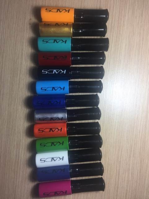Delivery fast in 22 days. I order not the first time. They came in a bag in a puffy, all whole, not a single defective bottle. now i have a complete collection. Varnishes very satisfied. Well pigmented, work with them comfortably, not quickly drying (except black). Smell like ordinary varnishes. Bottles are plastic, all full. The brush is comfortable, moderately long. The color corresponds to the claimed. Thanks to the store for the fast delivery and quality goods.