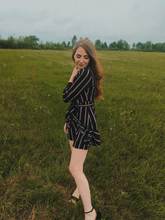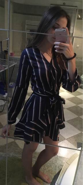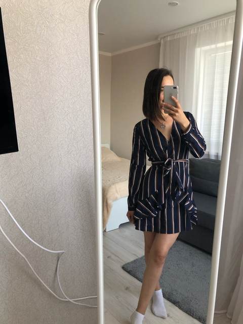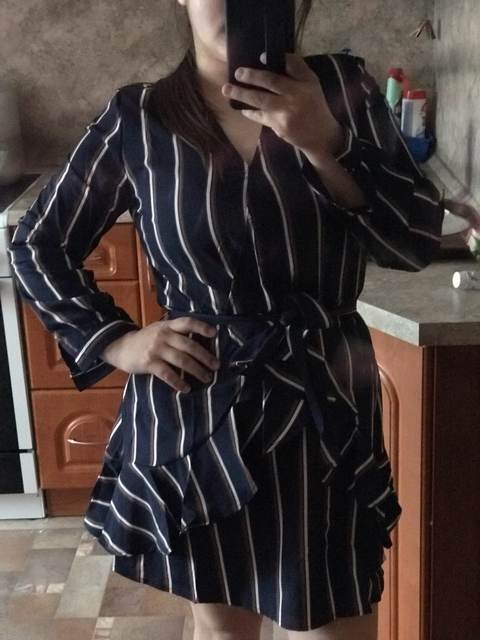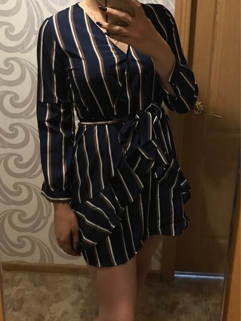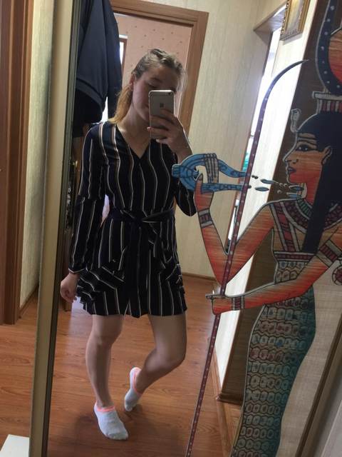 The dress is the same as in the photo. But please note that the oooochen deep will open the neckline. But you can sew that did not open strongly. My height is 164 and it is above the middle of the thigh. Short. But you can wear) took the size s. and so, in general, for its 600₽-good)