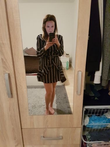 Cute dress :) Is made with pretty fajnego material, total can will be better for spring or cieplejszą Jesien but and so is porzadku. I have 167 cm tall waist 65 hip 72 ważę 49 kg and wzięłam M because bałam the that S will be too short. M is just right, not I believe by was until so short. Strap at dress is slightly torn but can somehow this repair. Shipping to Poland 10 days! Never I received shipment soon :). The dress is pretty :). It is made of quite nice material maybe better for spring or warm autumn than summer but even that the fabric is fine. We parametres: height 167 cm, waist 65 cm hips 72 cm weight 49 kg and I took M because AND you afraid S would be too short. AND think M is fine AND don't find it too short for me. The belt you ripped a bit but I will fix it somehow. The shipping is Poland 10 days! I have never received we order in such a short time :). Recommend. :)