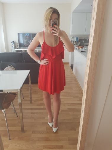 Dress dotarla in ciagu 2 weeks. Material not przeswituje, dlugosc before knee. I am glad
