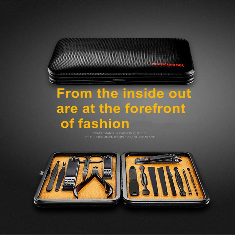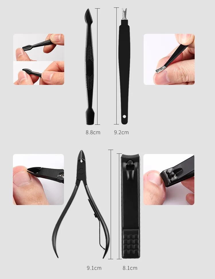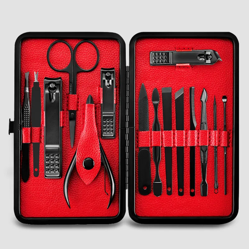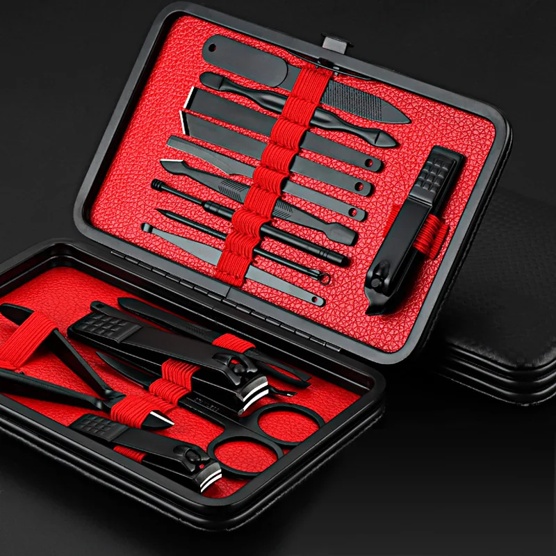 Multicolor 15 Pcs Black Stainless Steel Nail Clipper Cutter Trimmer Ear Pick Grooming Kit Manicure Set Pedicure Toe Nail Tools