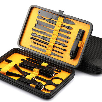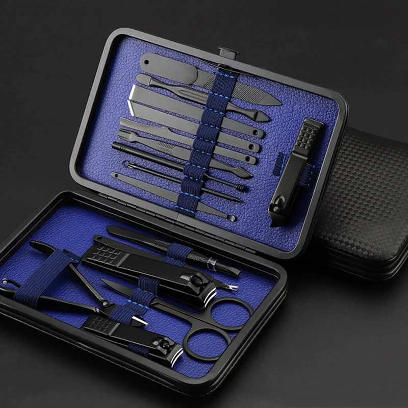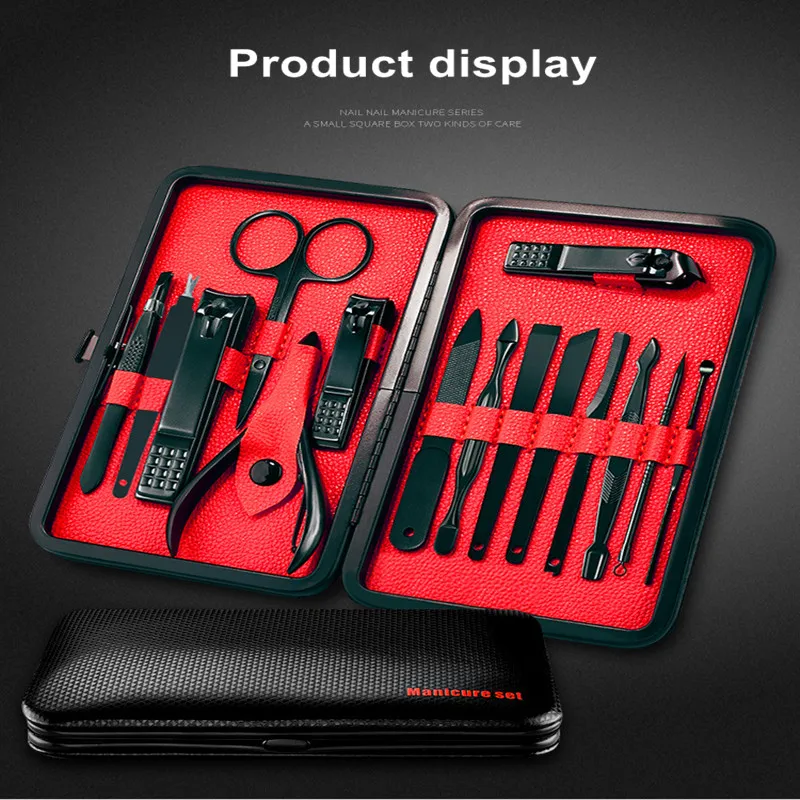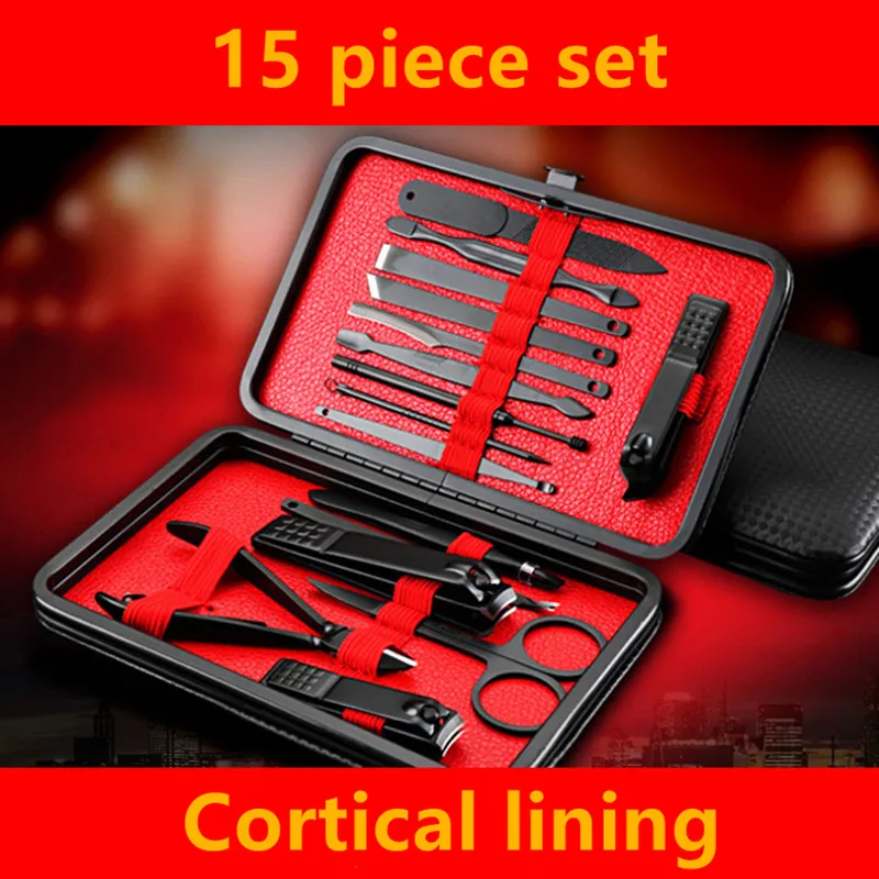 Multicolor 15 Pcs Black Stainless Steel Nail Clipper Cutter Trimmer Ear Pick Grooming Kit Manicure Set Pedicure Toe Nail Tools