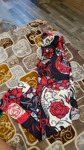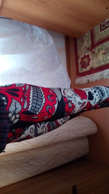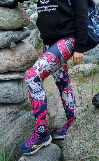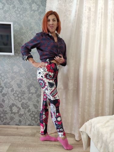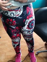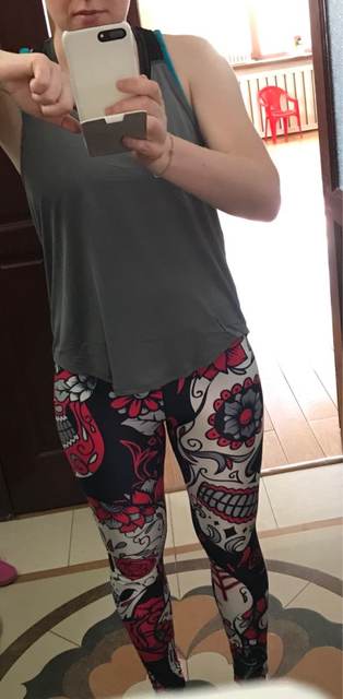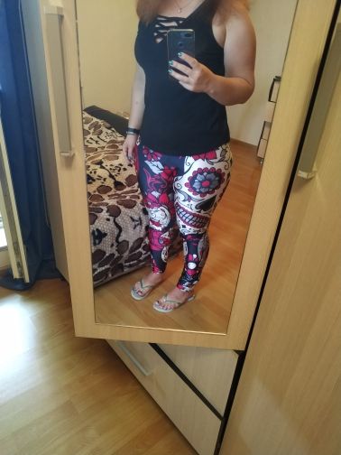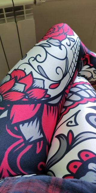 Leggings are good, flowers are bright. In russian 42-44 (now it is more likely 44) the size s came back to back. The length of the growth is 161 norms. In white color slightly shines through and black underwear is visible, so with black do not wear :)) shovchiki Even, the threads do not stick out. Delivery fast, Weeks three in st. petersburg