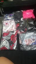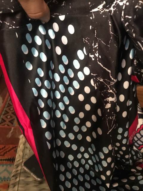 I charm the material very good quality exact as the one in the photo and the sizes fit well i am size 46 and they made me super even ubviese chosen one size less are high shot and very comfortable