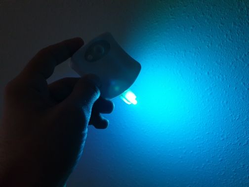 It perfectly detects movement and in the dark illuminates enough for what it is. It's better to leave it fixed in one color, since if it doesn't look like a fair.