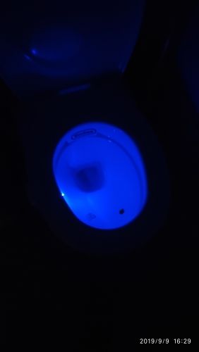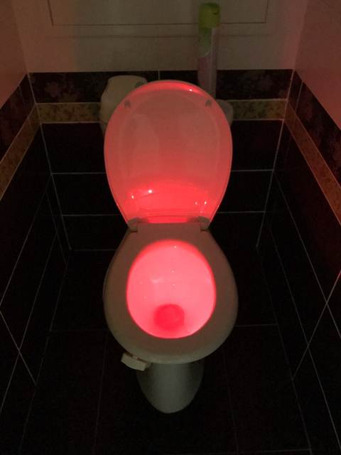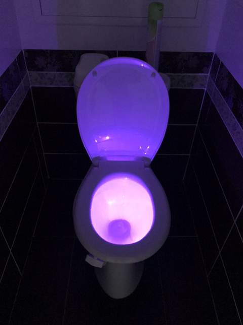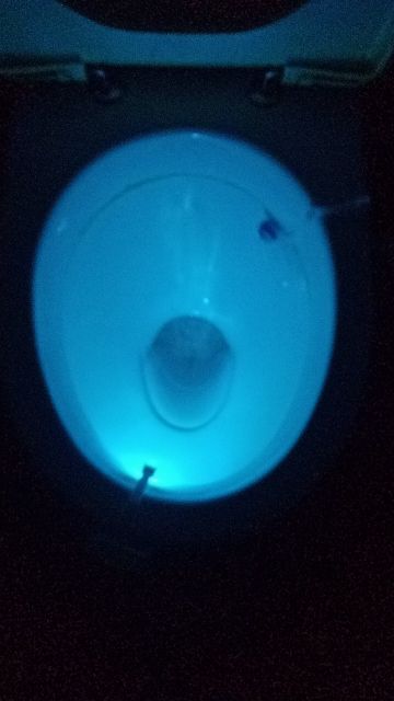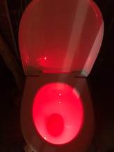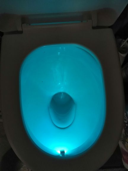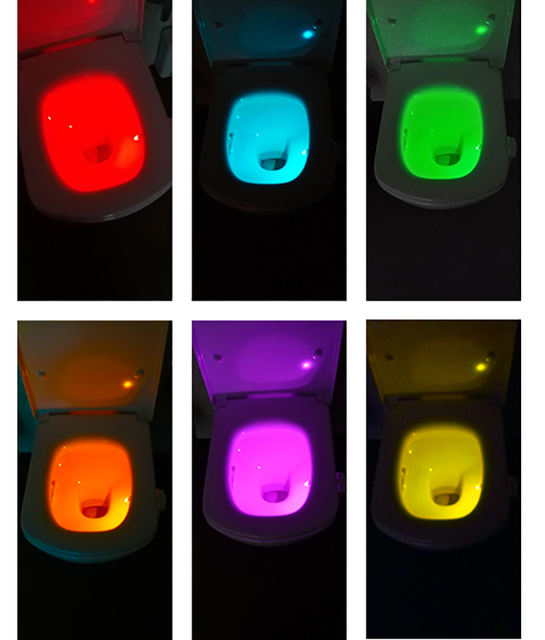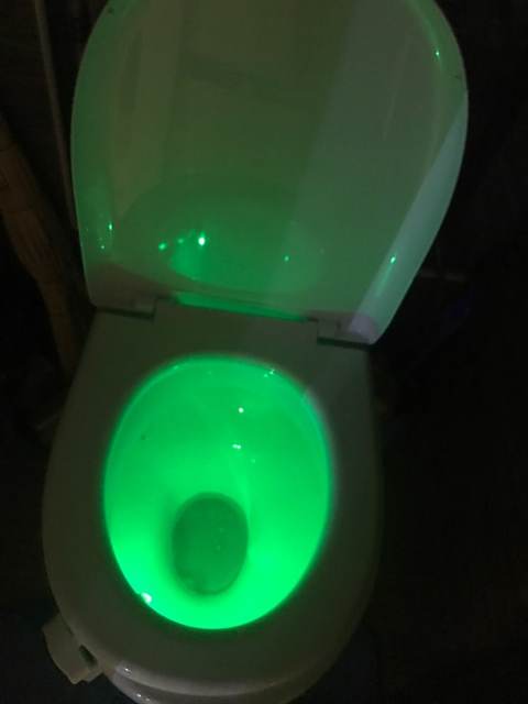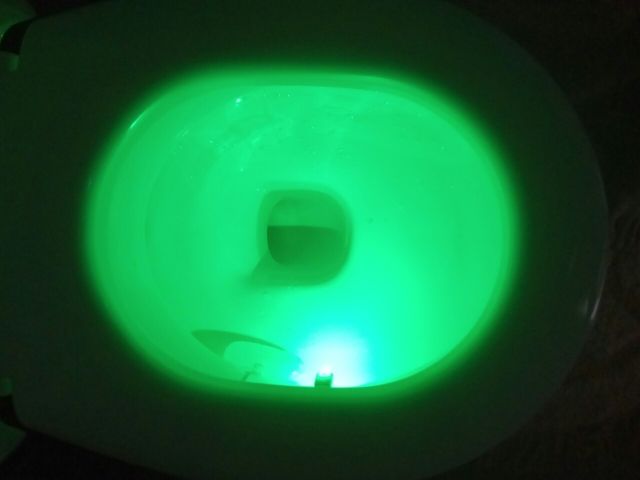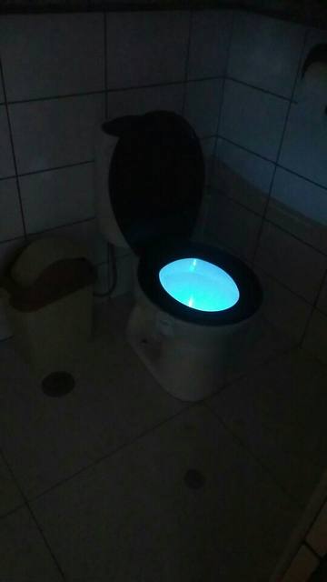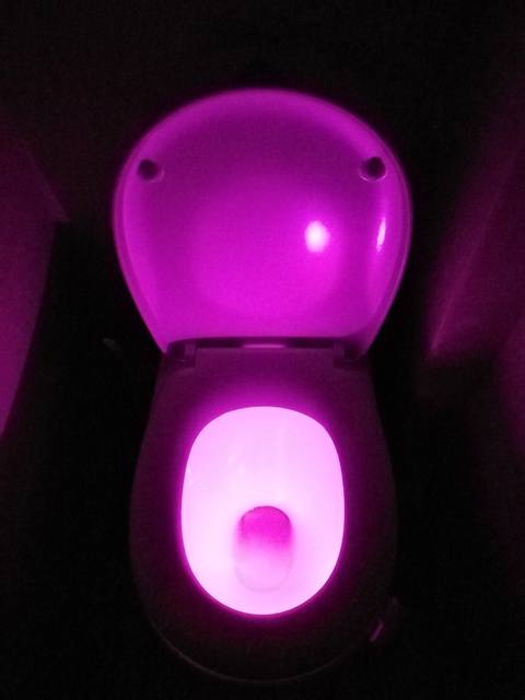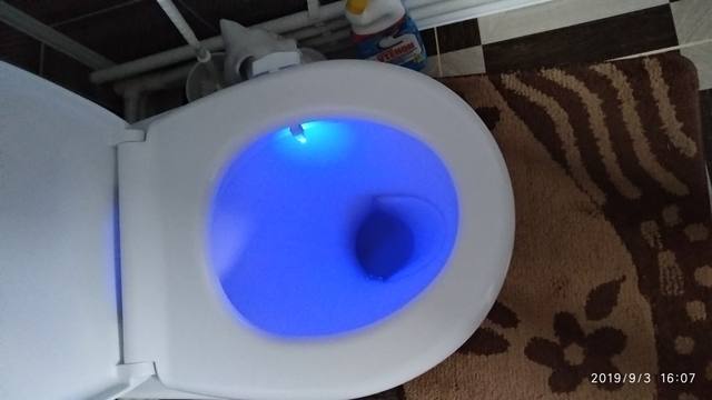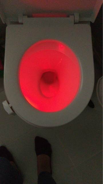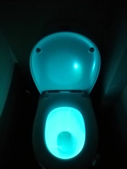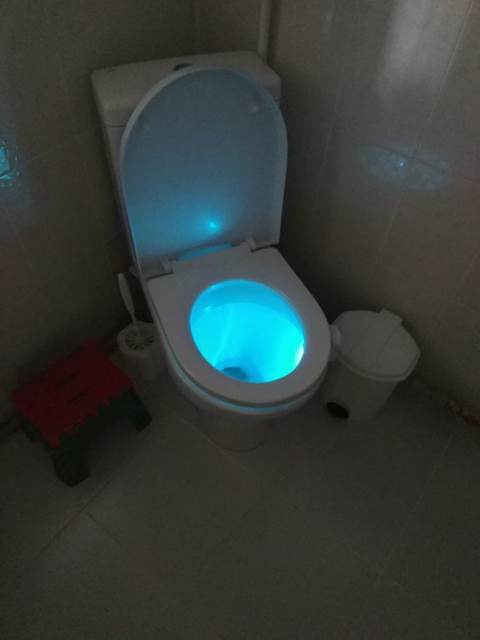 Cool thing! Hook with light гнётся. On any toilet bowl will fit. Button switches the mode on multicolor