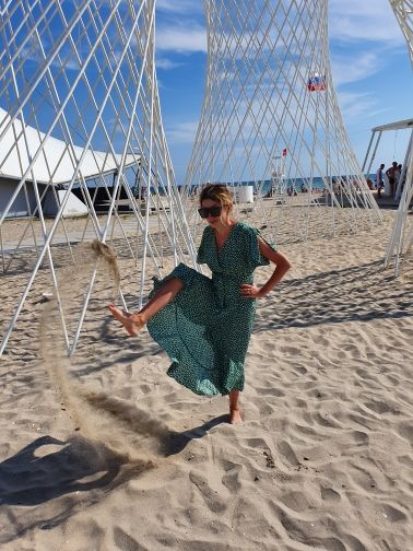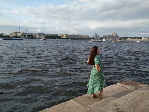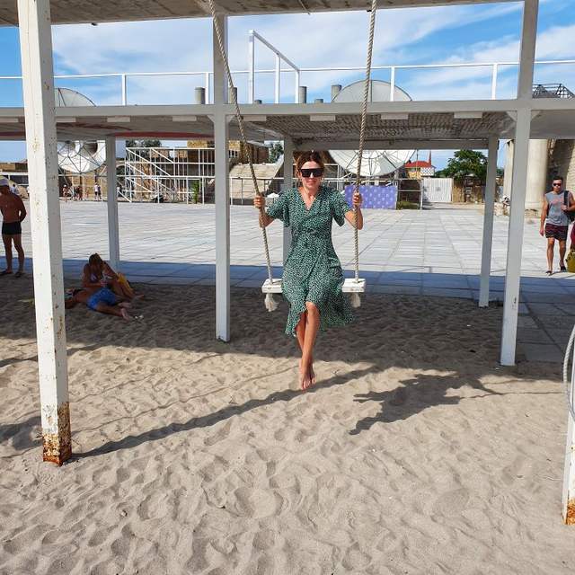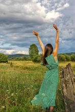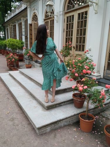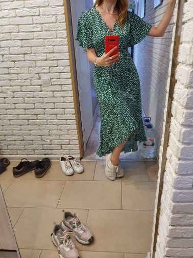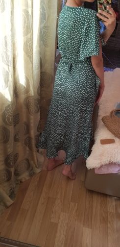 Luxurious dress. In the heat it is not hot. From the breeze the hem is flying. Size s approached my parameters 90/65/89 and height 160
