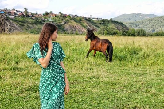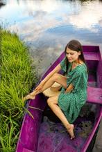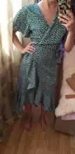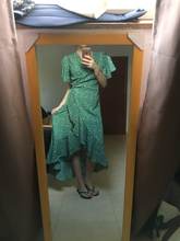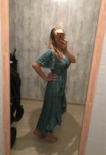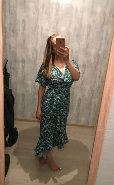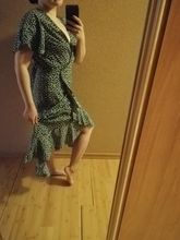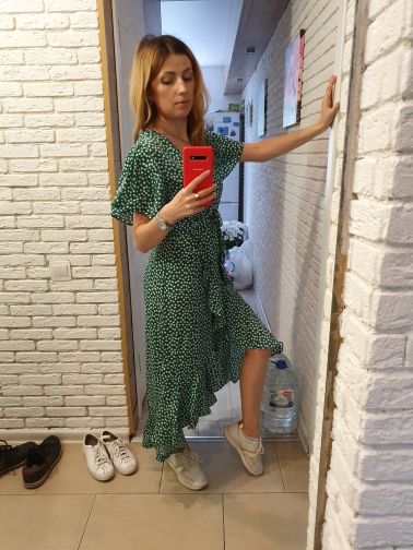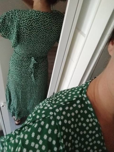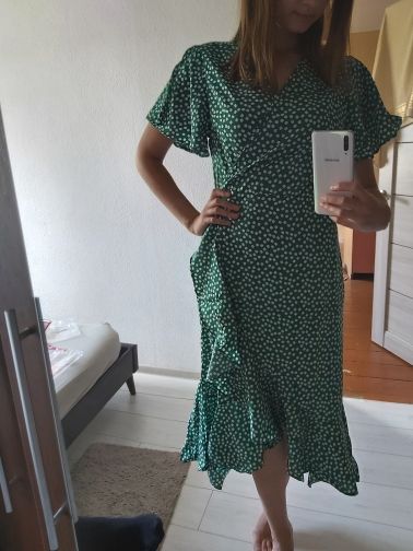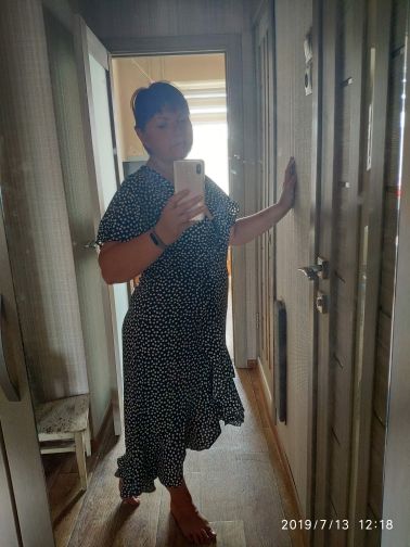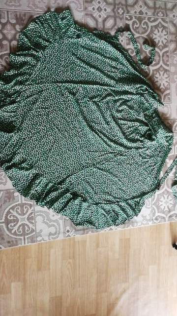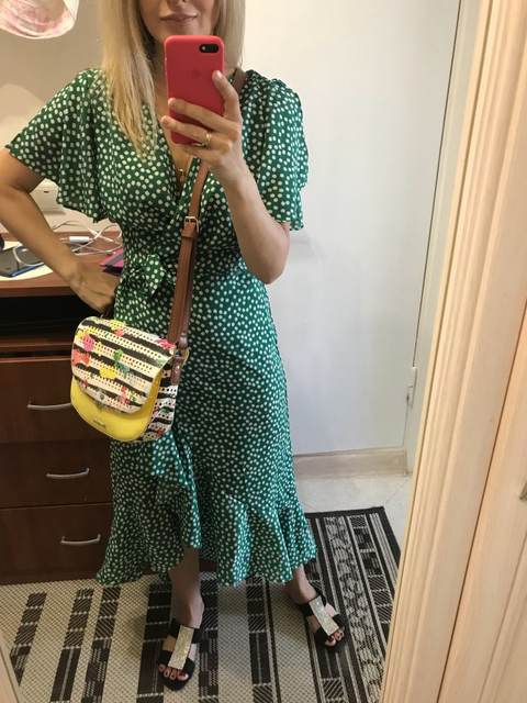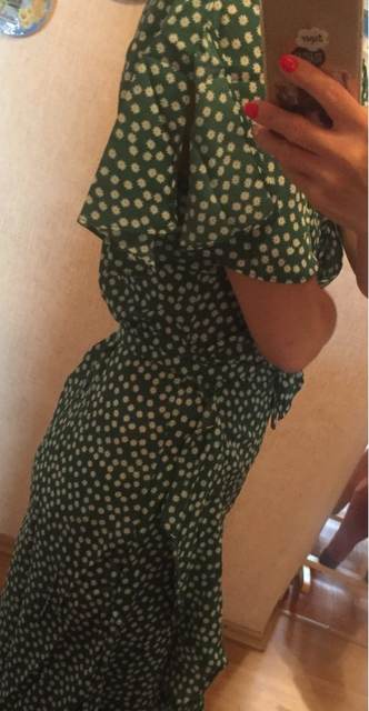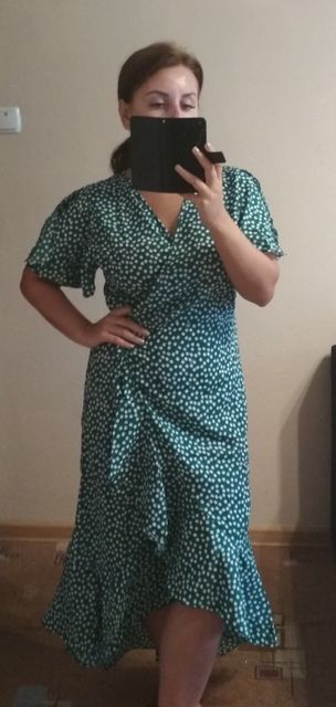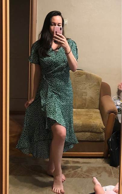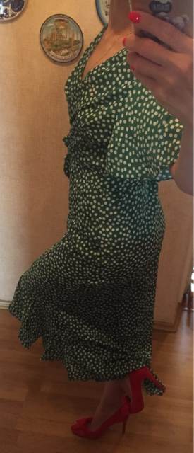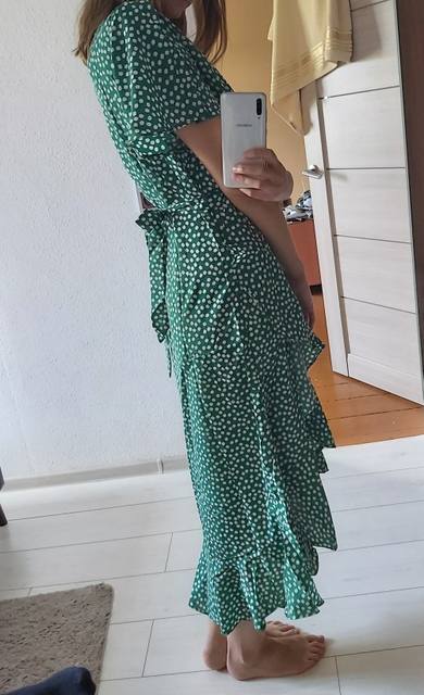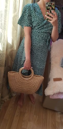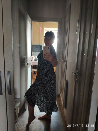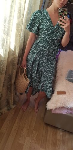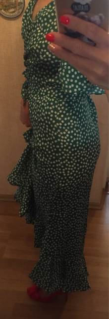 The goods came quickly enough, within 2 weeks. A pretty dress for 600 rubles. True synthetics, in hot weather will not be comfortable, but it's not scary personally for me. I will wear it in cool weather. Color, shade is different. At the store it is more herbal, the option is brighter, cold shade. At my height 158, almost to heels. If you beat accessories will look more interesting. Well, either as a robe at home can be worn))) at its m took the size of m. Just right.