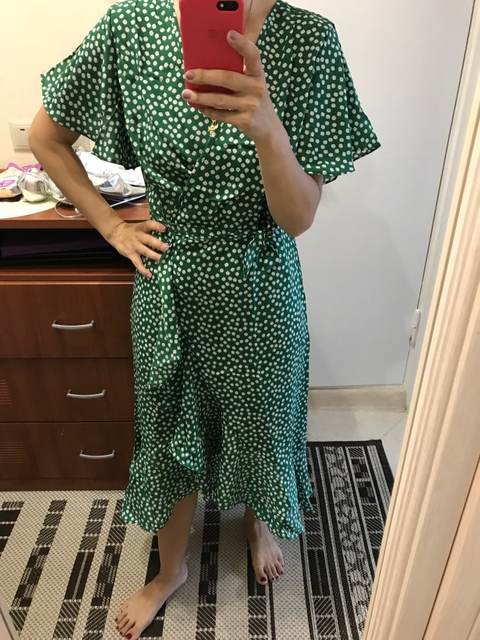 Dresses are excellent and black and green. The material is pleasant to the body synthetics. On the parameters og97 ob97 ot77 size l perfectly sat due to the smell, you could safely take m, but also so excellent, the growth of 1m60 is long on the bone on the foot. Probably i will not risk wearing them at work, but for a walk in warm weather or at sea it will be excellent. With the delivery there was a hitch, the order was sent, then returned, then sent again with another tracking number, in general, everything came in a month.