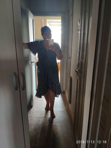 I liked the dress, i always take the size not less than m, at my 42-44, and then, after reading the reviews, i took a chance to take s, and perfectly suited. I do not have enough volume in the chest in this dress)), and i really liked the landing.