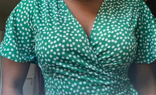 The dress is cool! The only line is crooked at the throat and the belt is slightly lower. And so very beautiful.
