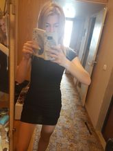 The parcel was 20 days, but i paid 50₽ for fast delivery. The quality of the dress is good. Threads do not stick out, the smell is barely catch. I wear the size s, it was ordered. Came up perfectly.