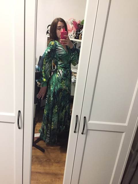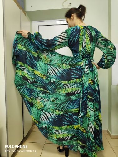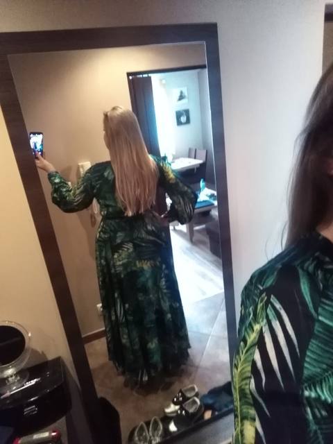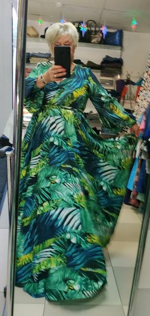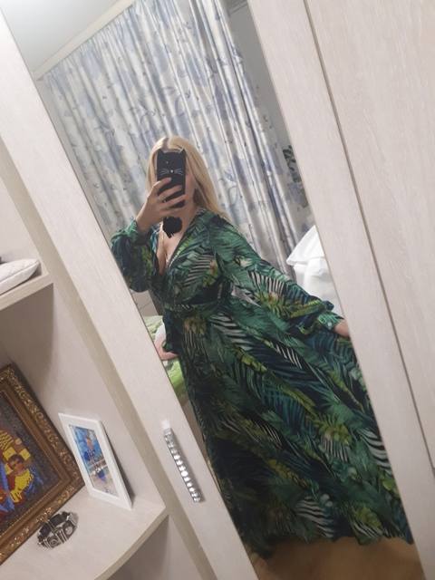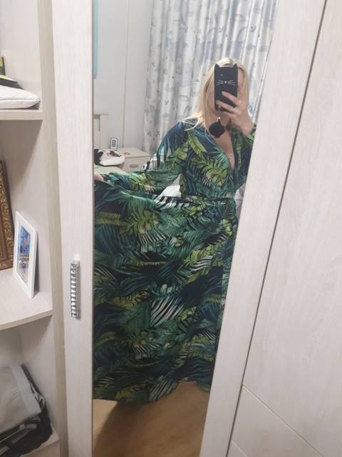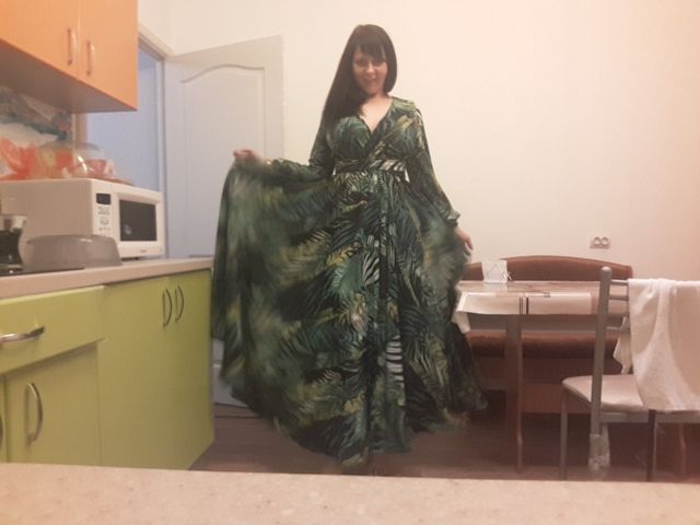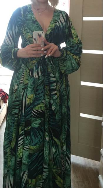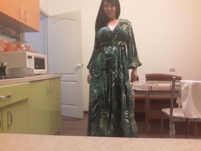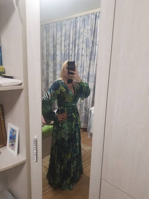 The dress is chic, as in the photo of the store. The seller is just a miracle, did not immediately reply to me, and then the discount ended, but on the order he gave me a coupon and the price came out as with that big discount!! It came quickly. The fabric is cool, flowing. Nothing shines through. On height 165 cm in the floor. On the parameters 95-80-105 came well, but slightly loose, you could safely take l, you can adjust the belt.