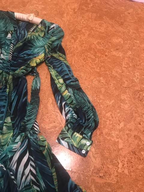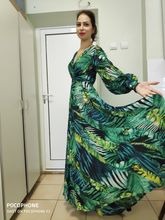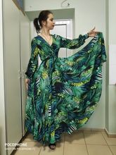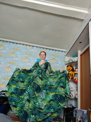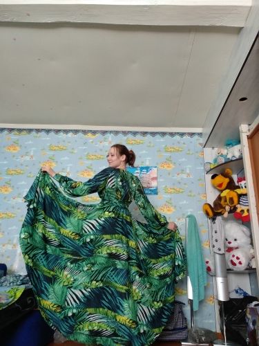 At 161 cm height, the dress is exactly in the floor, barely touches, you can not cut. There is no smell, good light flying fabric, stitched well, no protruding threads. In the belt is sewn an elastic band. Two large long belts, you can wrap and make a bow. In general, everything looks like in the picture! Sleeve on the cuff on the buttons. The fabric is transparent, the top is under the bra, but the skirt is so lush that the petticoat is not needed. On the back of the deduction (see. Photo). Buttons are some weird. The composition is not clear. Ordered on may 16 received at the post office in mo on may 28! Conclusion: the dress is cool-the blade of the heads!