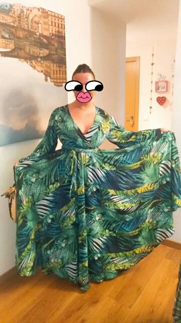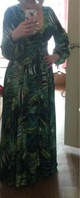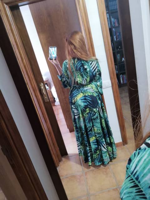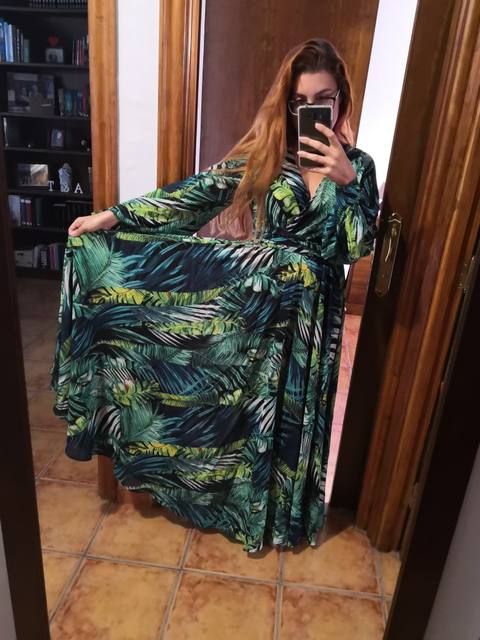Spectacular❤He's got a lot of flying, and a lovely fall. Surely no one would say it's worth what it costs. It's a wonder. The size fits very well. I asked for the xl pq i was afraid i 'd be small. I'm sure an l would have looked good, but in this kind of dress one size more is not an inconvenience to having the cross neckline and the belt to fit your waist will look great and you will earn a little more flight